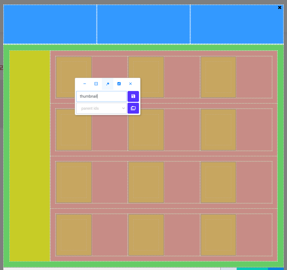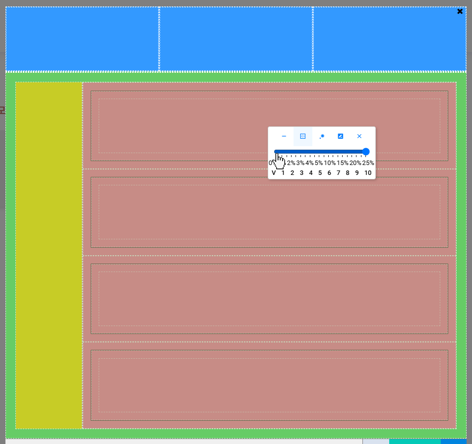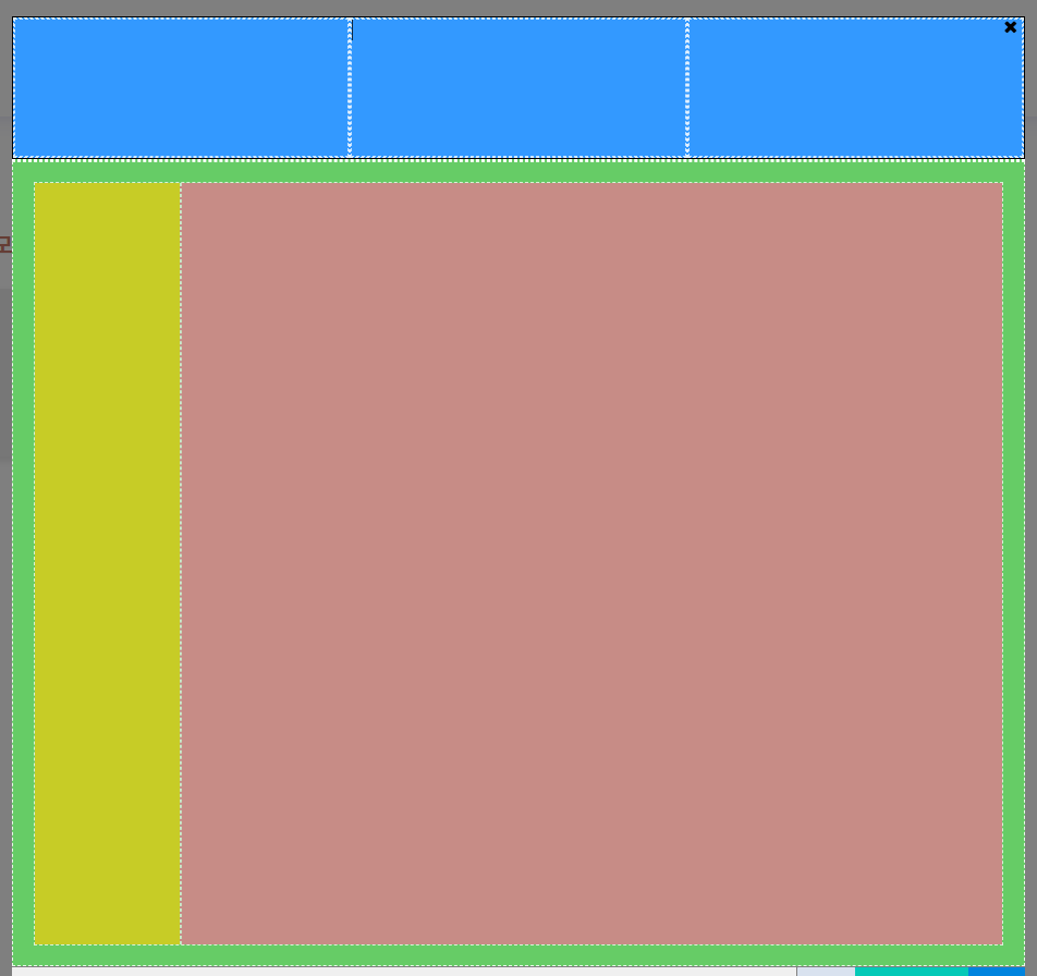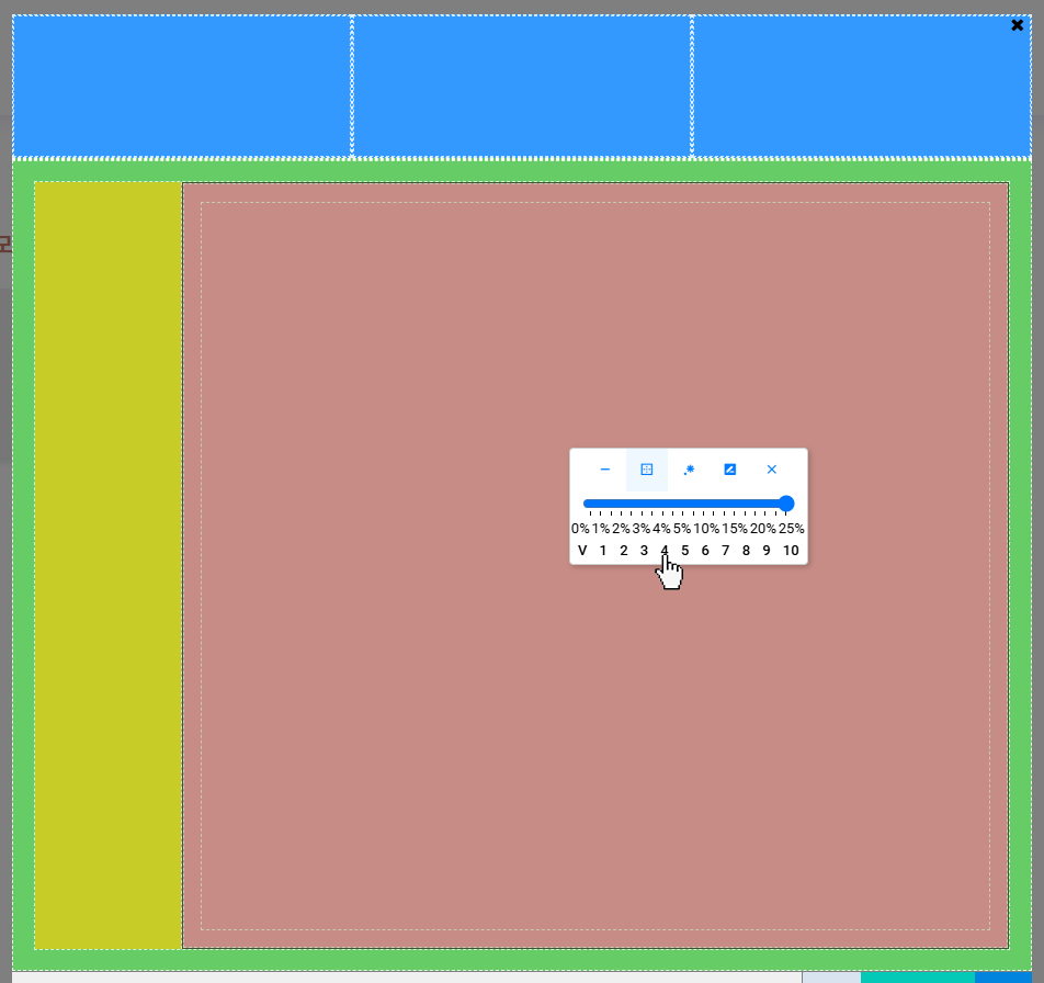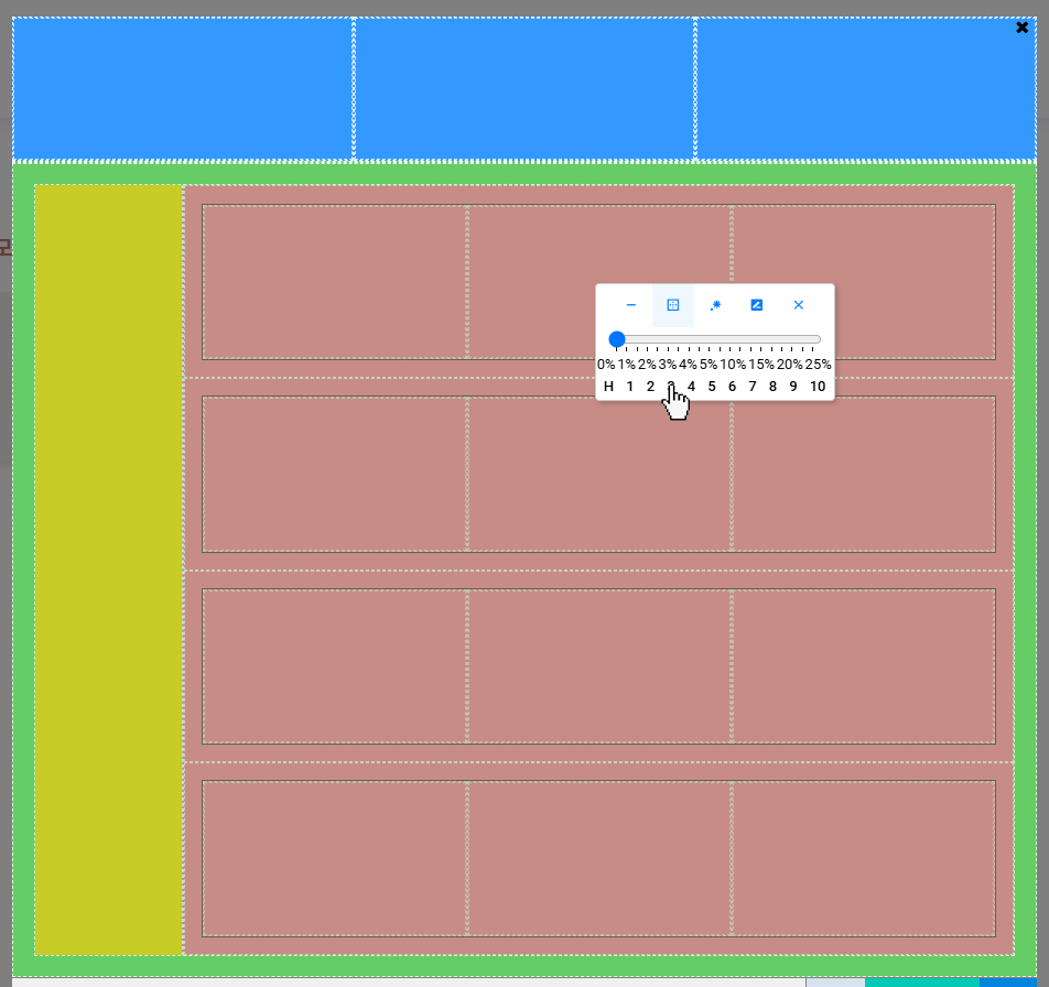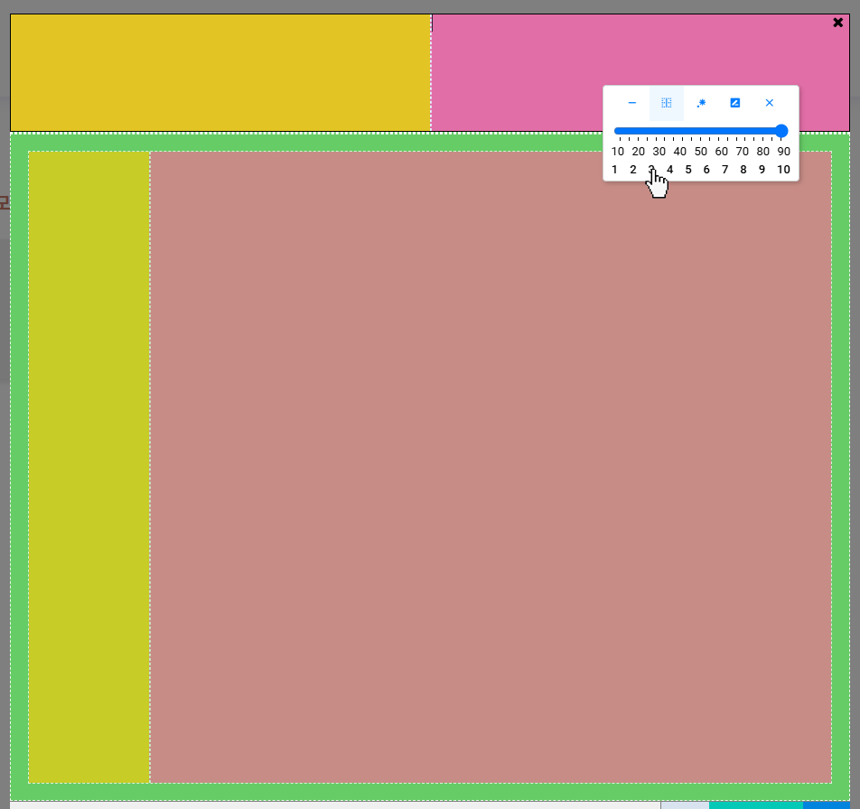 3을 선택하면 현재 선택된 사각형이 3등분됩니다. - 기본적으로 가로로 분할되며,