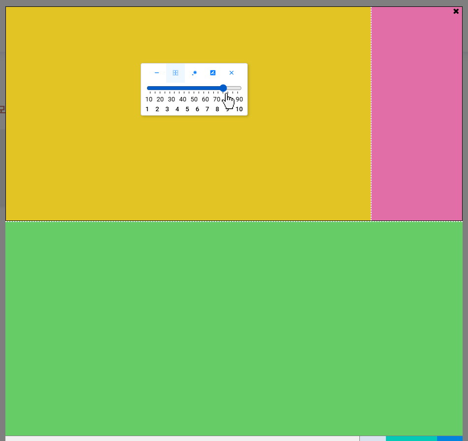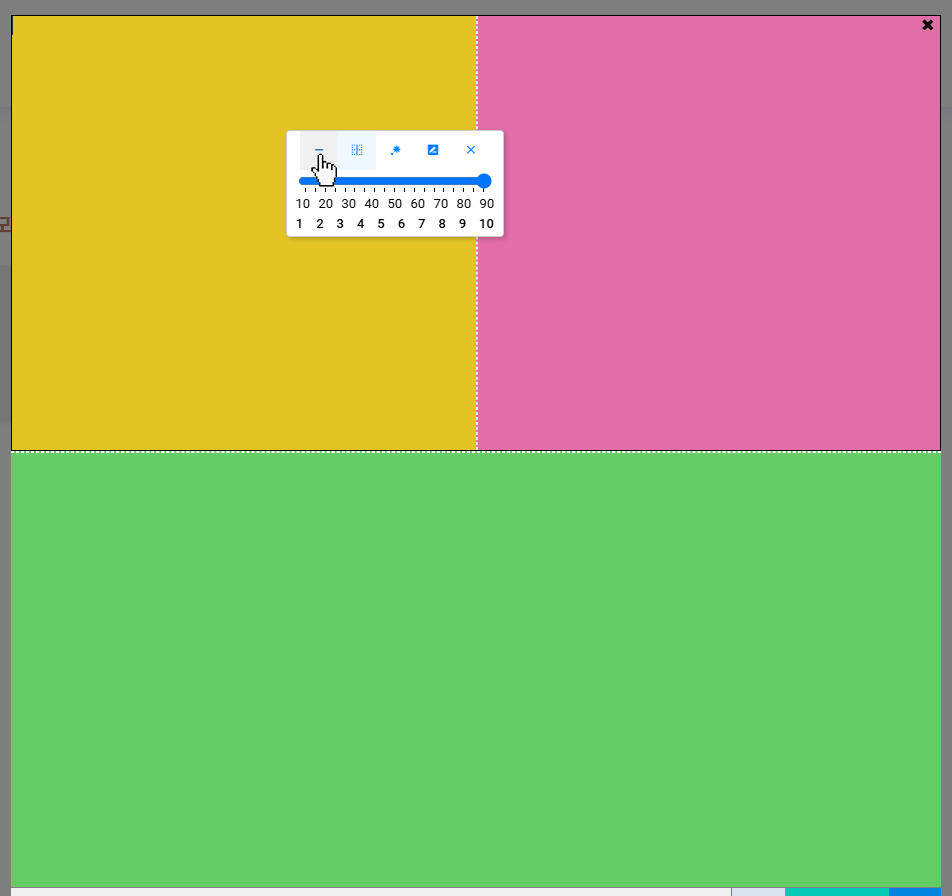 마우스 위치에 따라 가로 나누기, 세로 나누기, 사각형 안 사각형 만들기를 선택할 수 있습니다.