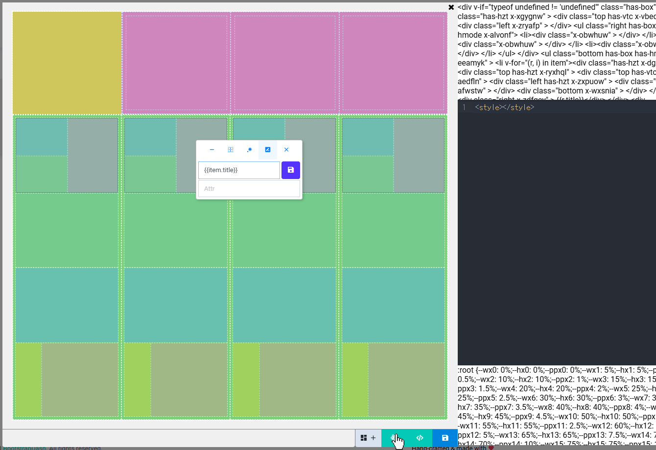 버튼 클릭 후 속성창에서 Slot 입력창에 값을 입력하여 추가 가능- HTML 및 템플릿 코드 지원