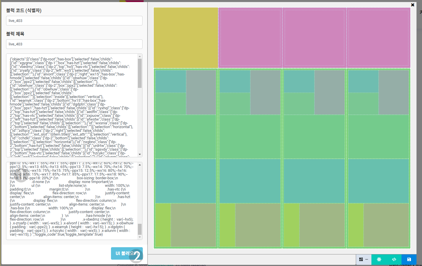 LOAD JSON텍스트 영역에 붙여넣으세요. - 원하는 크기를 선택한 후,